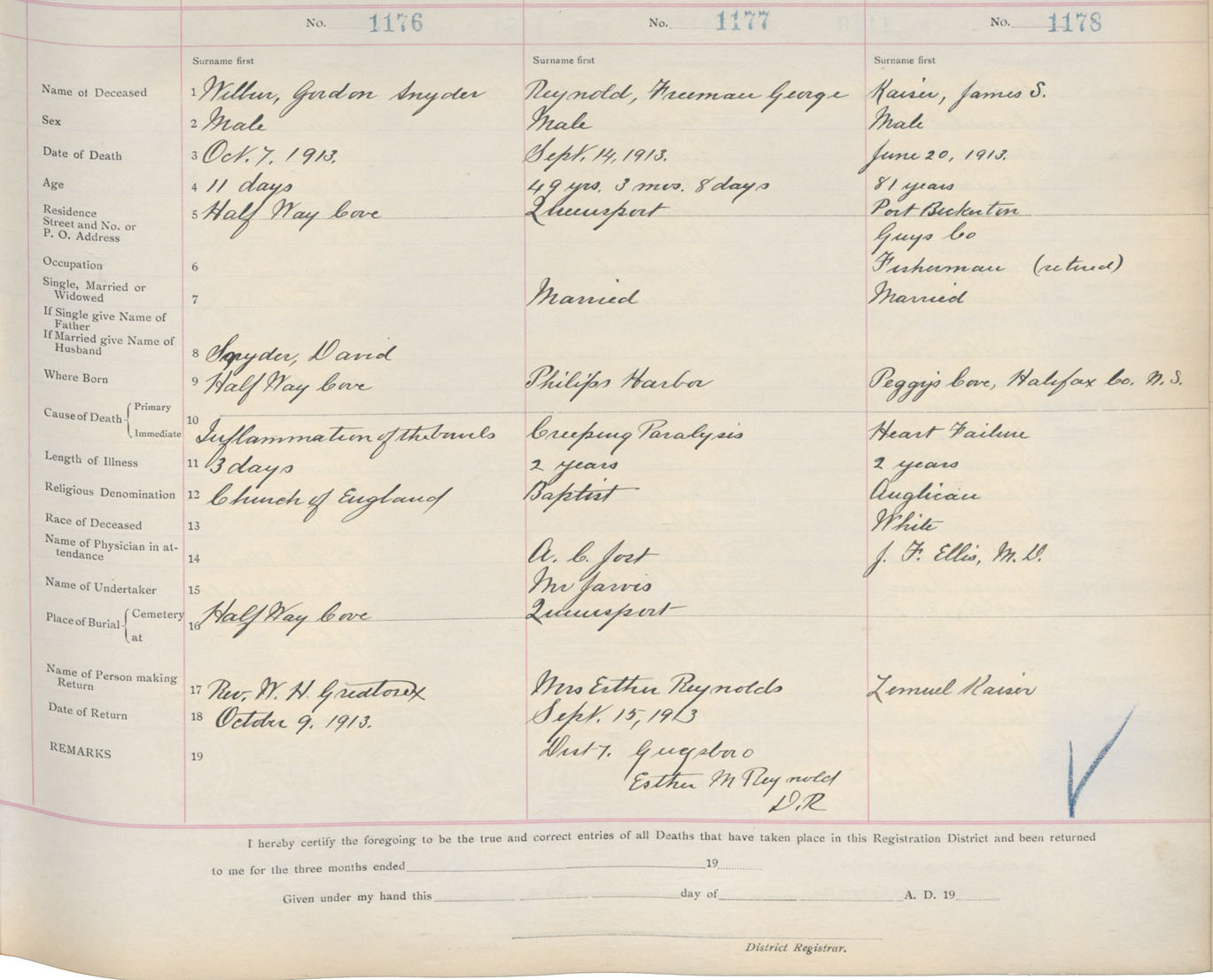 Death Registration: Year: 1913 book: 7 page: 194 number: 1176