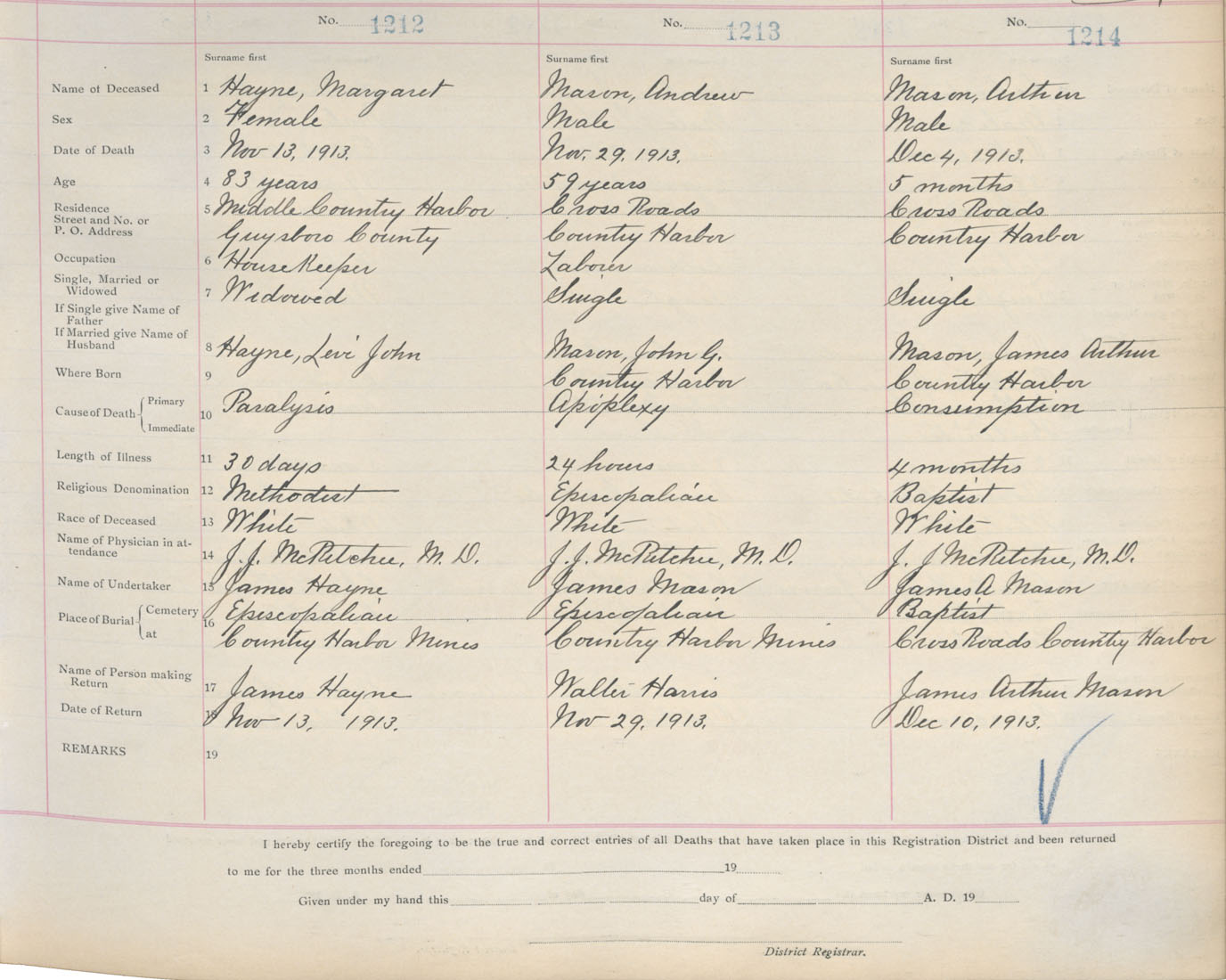 Death Registration: Year: 1913 book: 7 page: 200 number: 1212