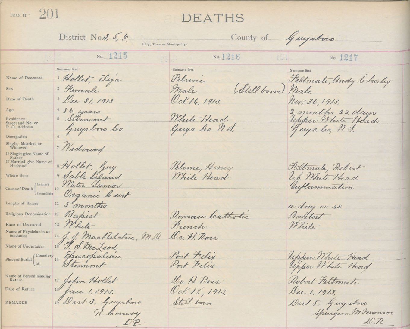 Death Registration: Year: 1913 book: 7 page: 201 number: 1215