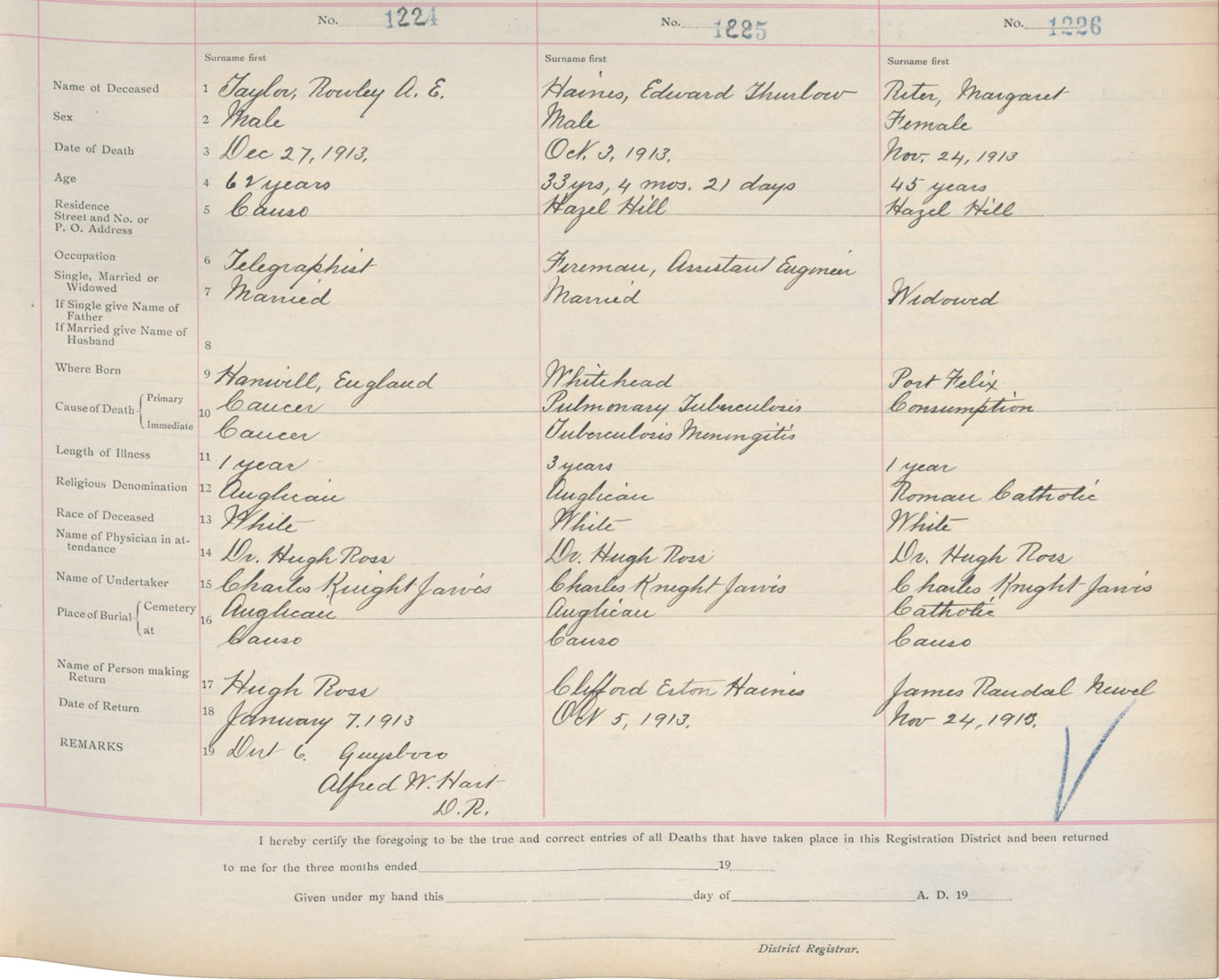 Death Registration: Year: 1913 book: 7 page: 202 number: 1224