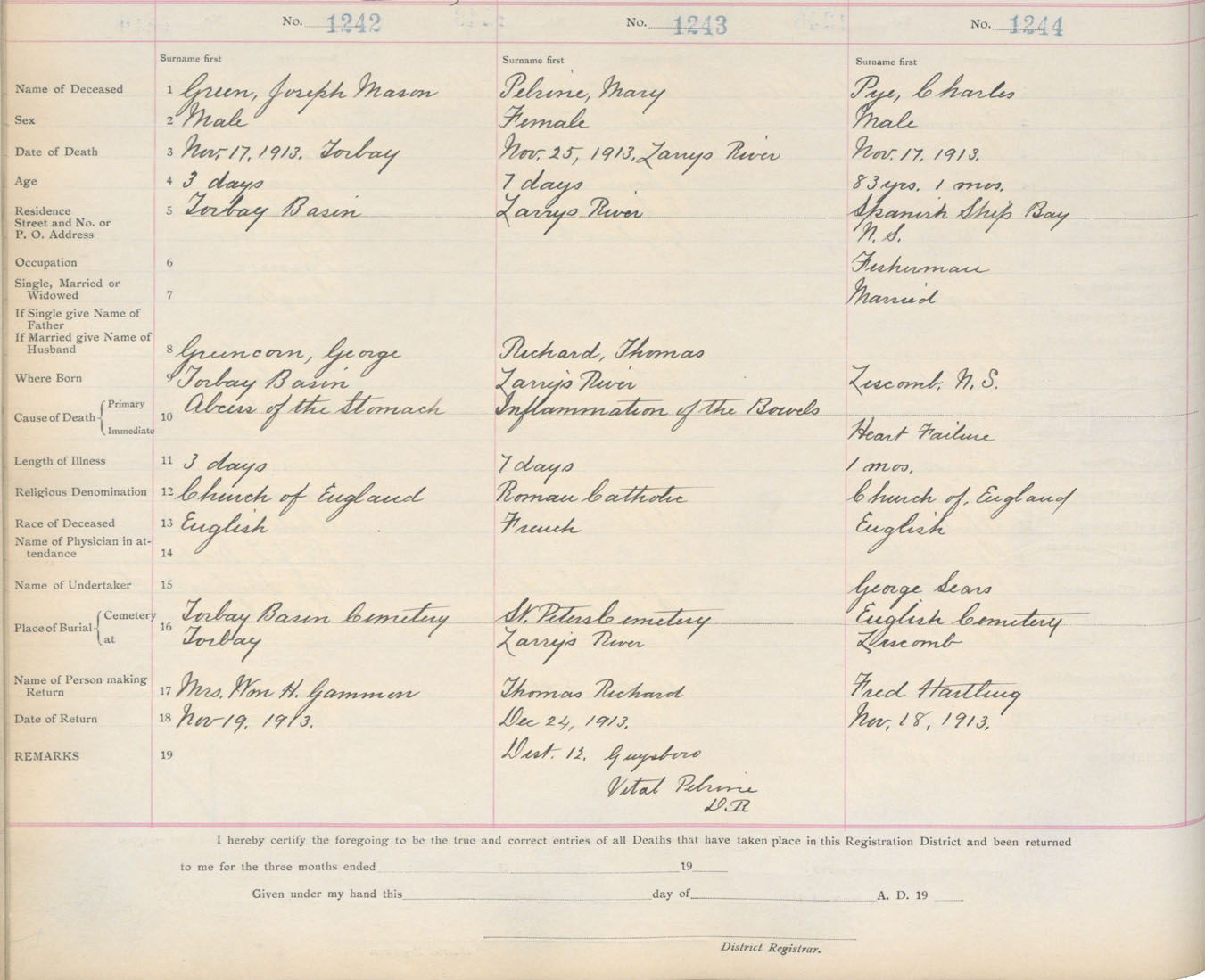 Death Registration: Year: 1913 book: 7 page: 205 number: 1242