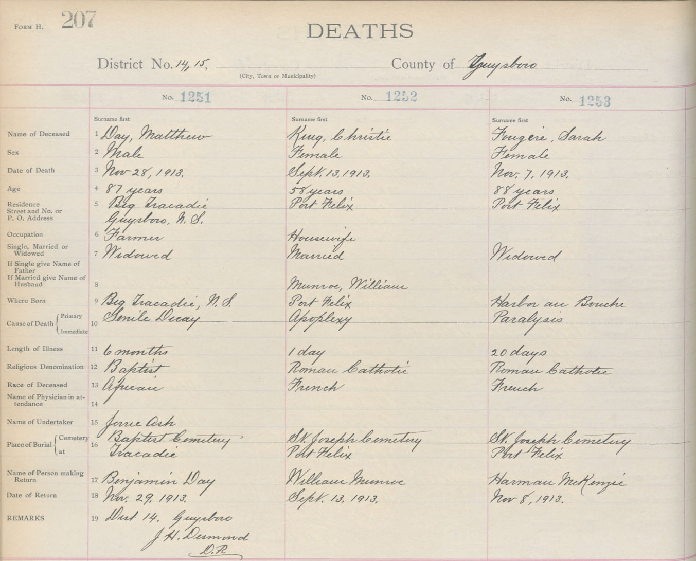 Death Registration: Year: 1913 book: 7 page: 207 number: 1251