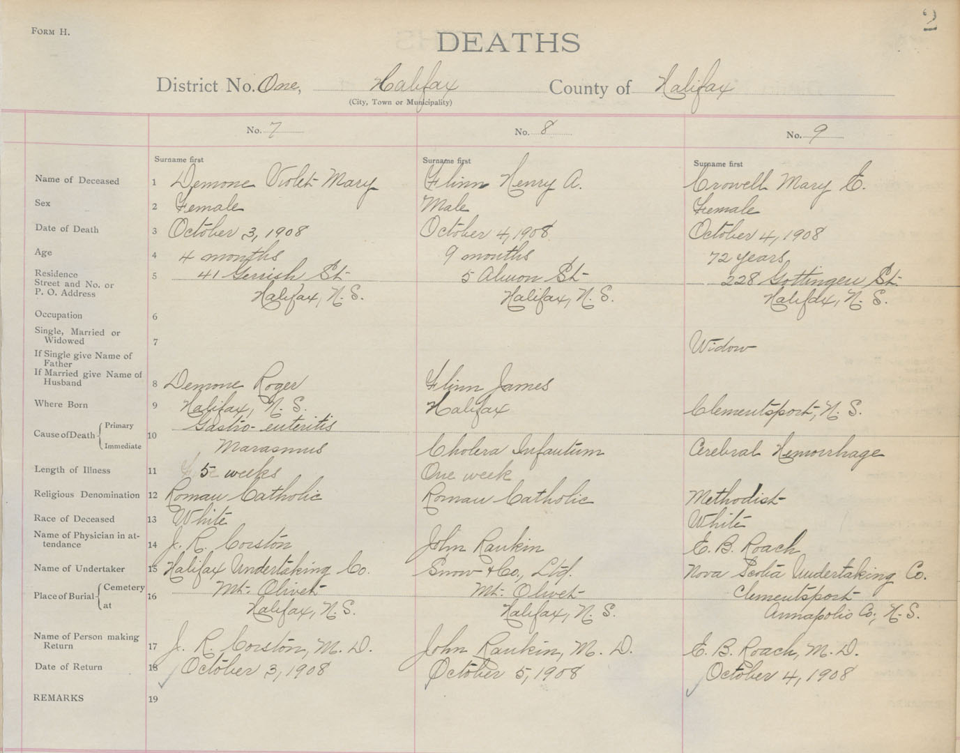 Death Registration: Year: 1908 book: 8 page: 2 number: 7