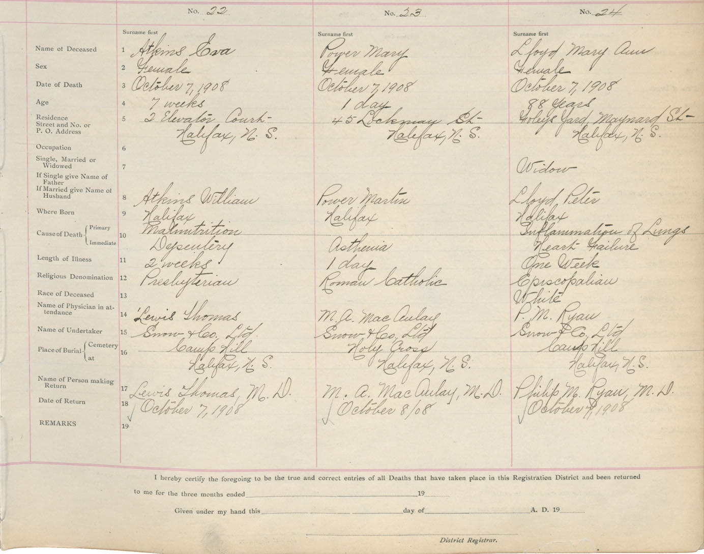 Death Registration: Year: 1908 book: 8 page: 4 number: 22