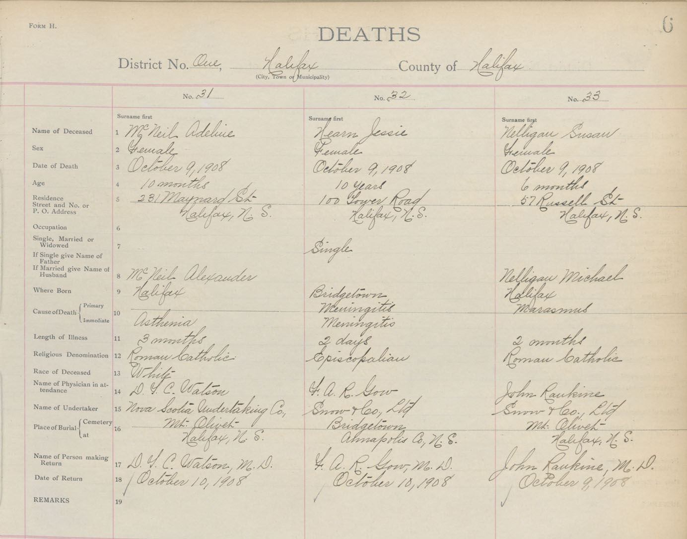 Death Registration: Year: 1908 book: 8 page: 6 number: 31