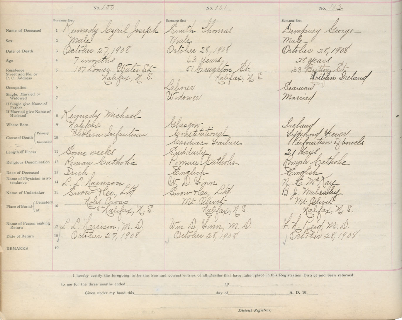 Death Registration: Year: 1908 book: 8 page: 17 number: 100