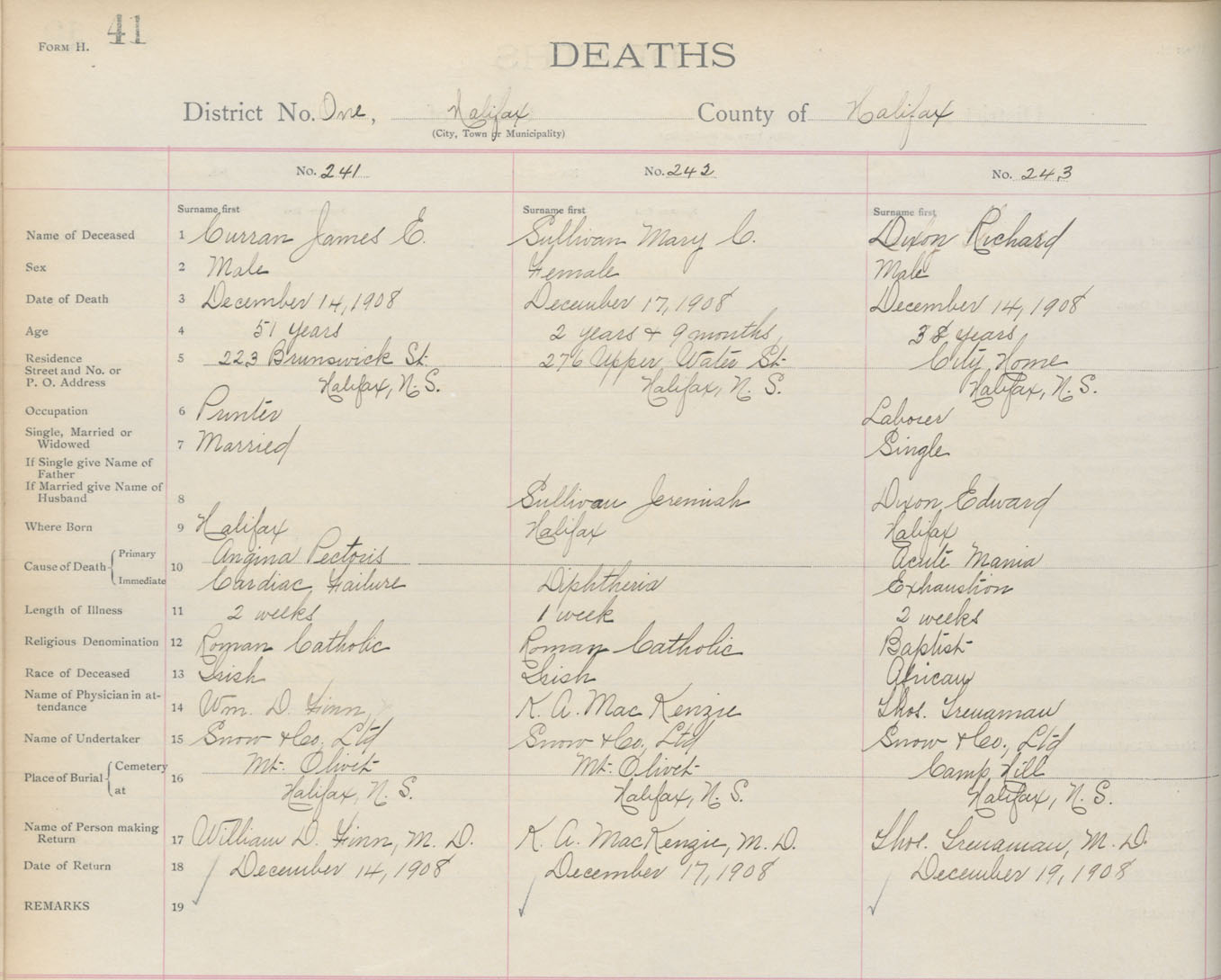 Death Registration: Year: 1908 book: 8 page: 41 number: 241
