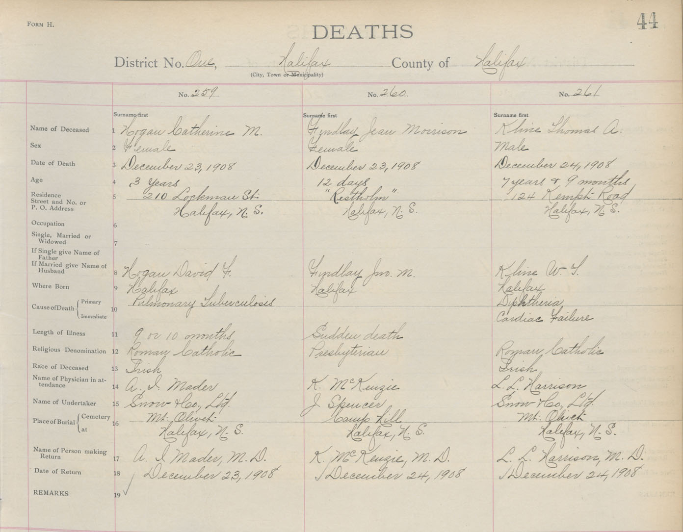 Death Registration: Year: 1908 book: 8 page: 44 number: 259