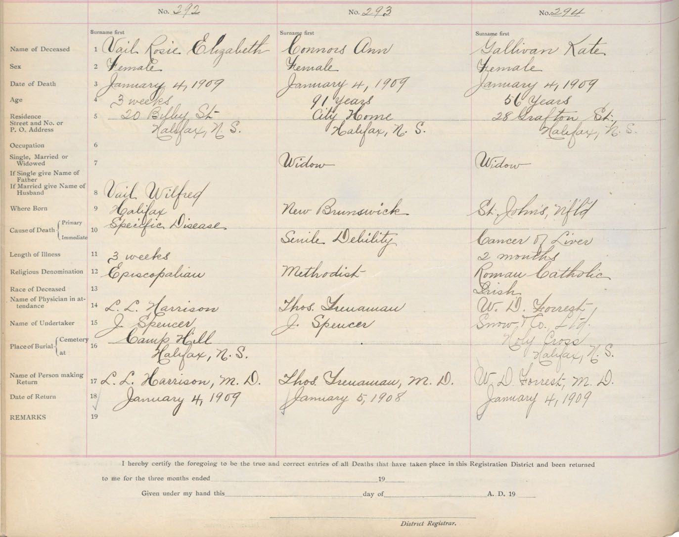 Death Registration: Year: 1909 book: 8 page: 49 number: 292