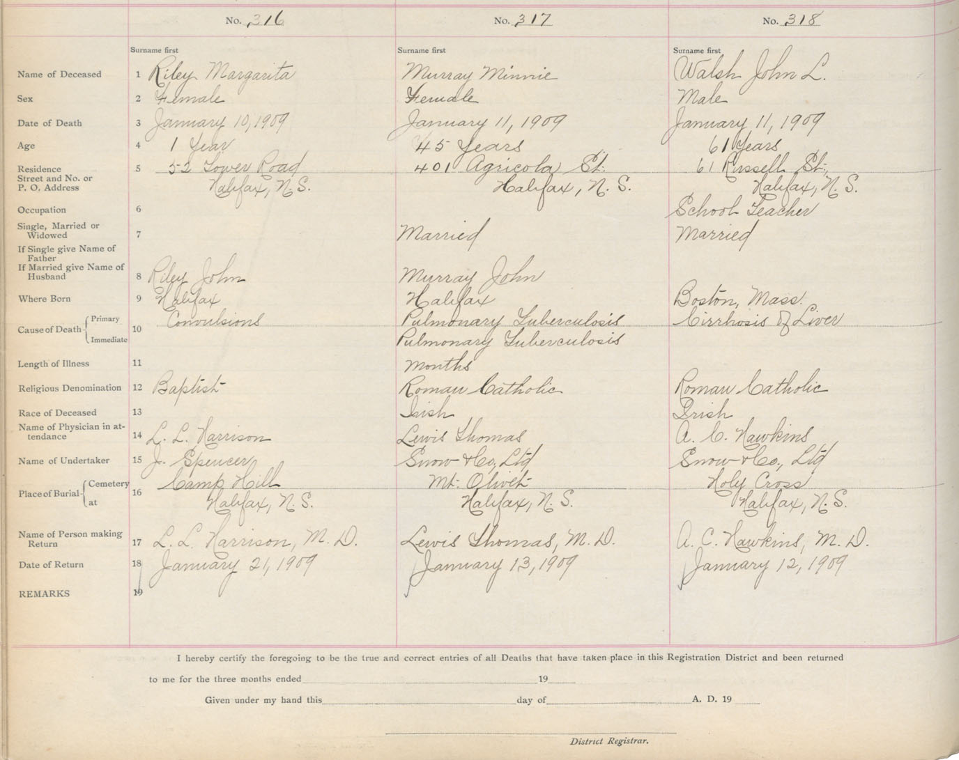 Death Registration: Year: 1909 book: 8 page: 53 number: 316