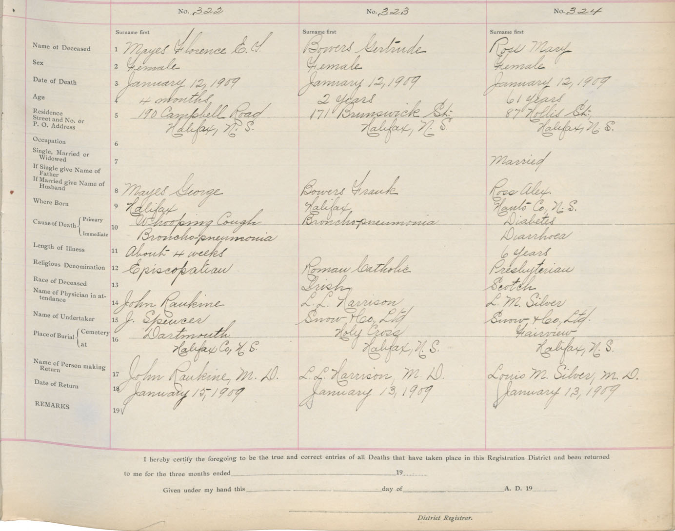 Death Registration: Year: 1909 book: 8 page: 54 number: 322