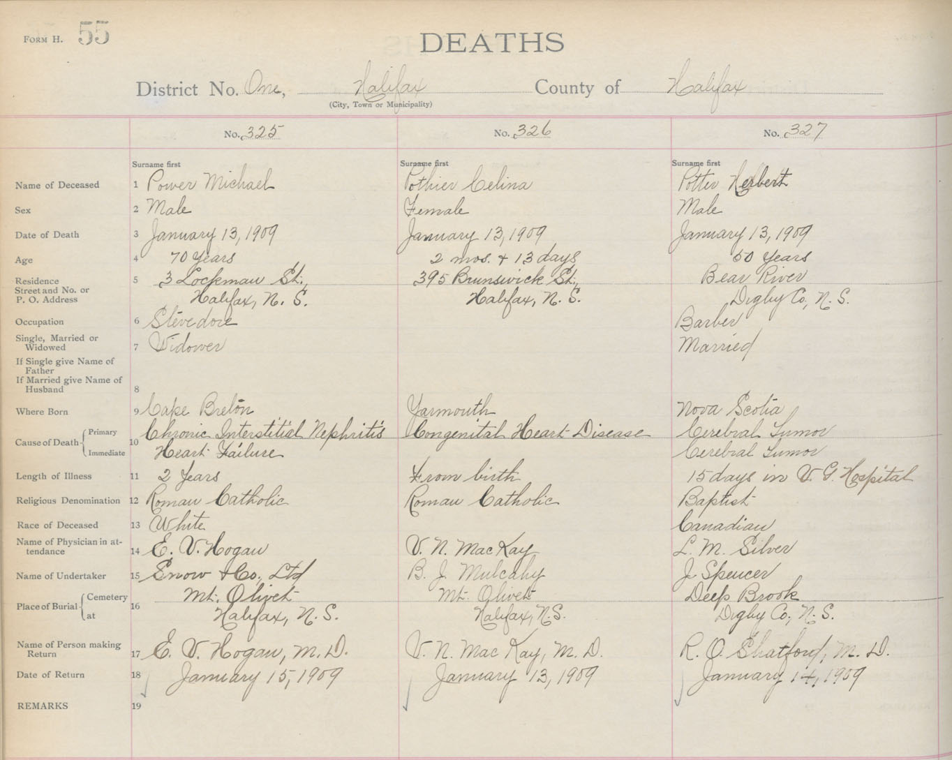 Death Registration: Year: 1909 book: 8 page: 55 number: 325