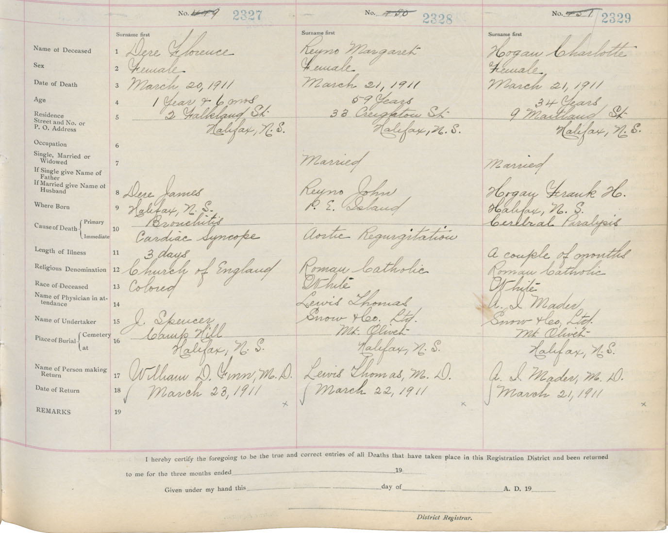Death Registration: Year: 1911 book: 8 page: 388 number: 2329