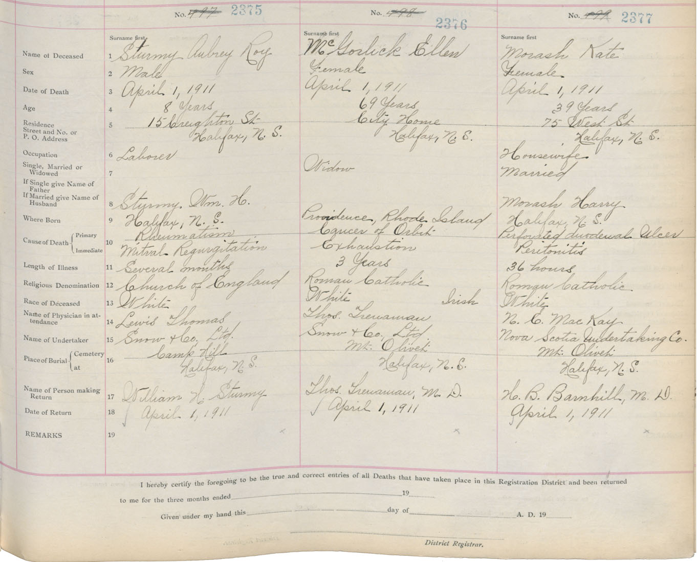 Death Registration: Year: 1911 book: 8 page: 396 number: 2377