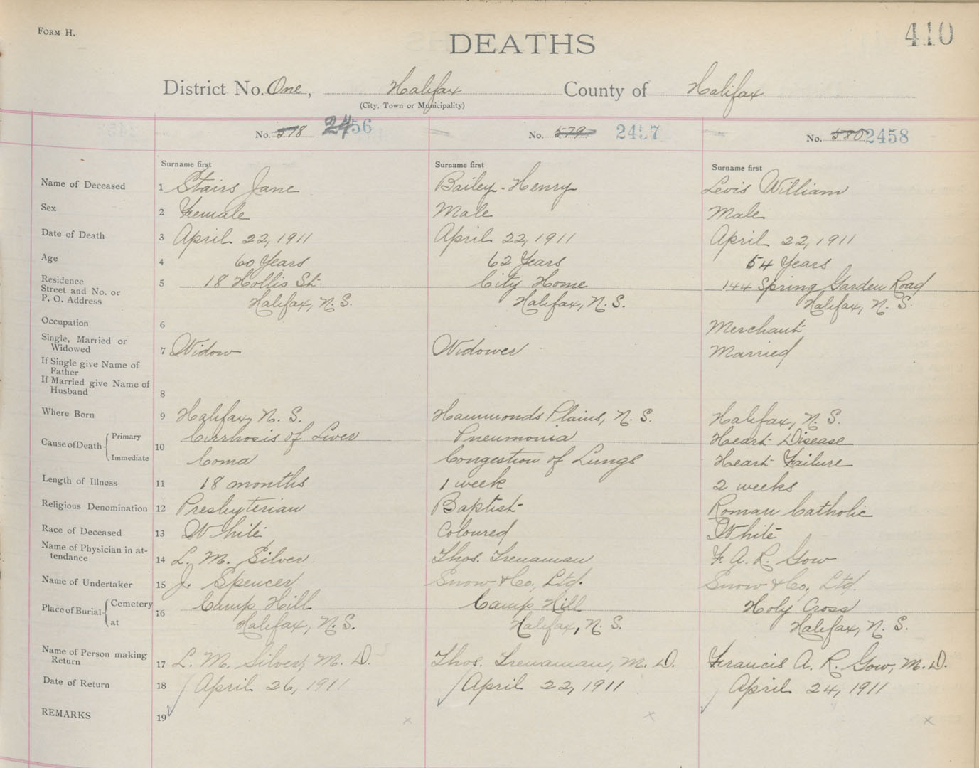 Death Registration: Year: 1911 book: 8 page: 410 number: 2458