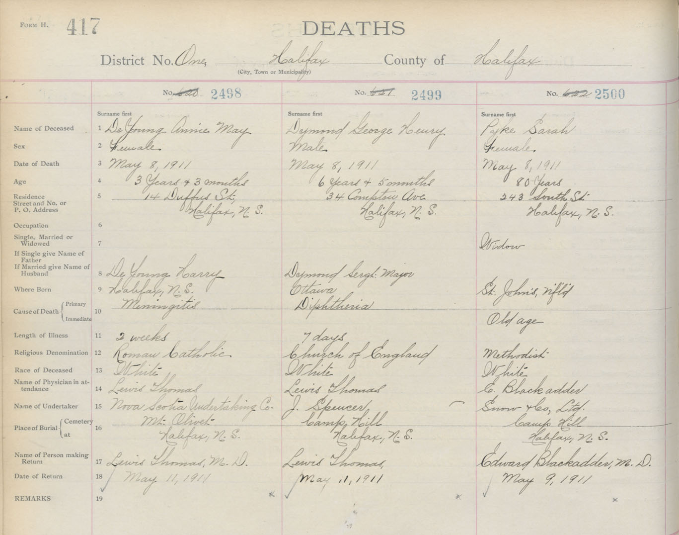 Death Registration: Year: 1911 book: 8 page: 417 number: 2500