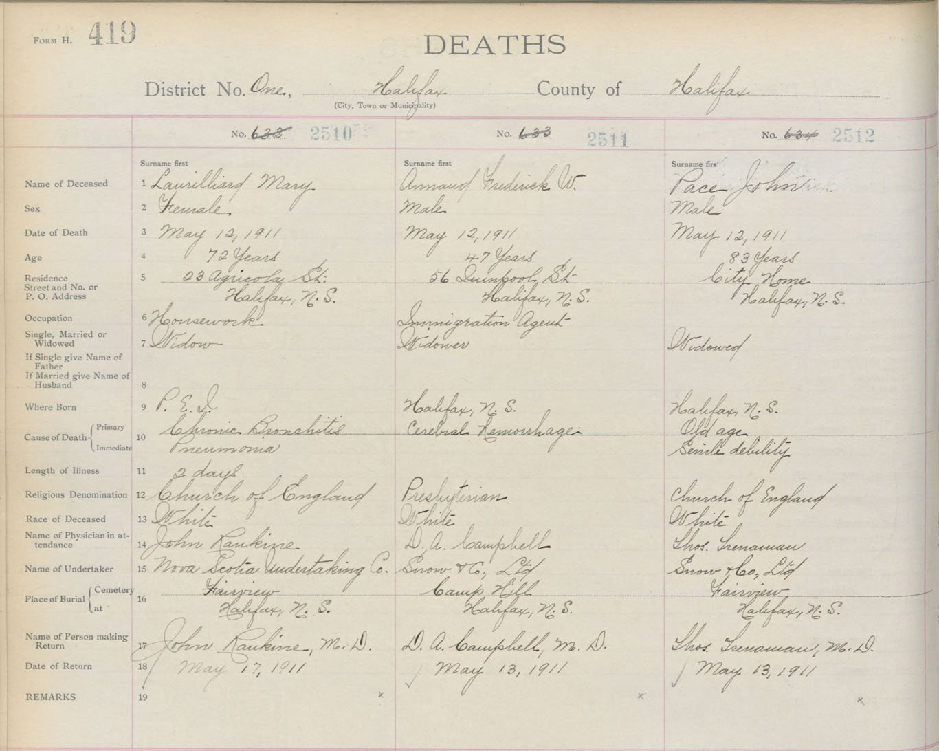 Death Registration: Year: 1911 book: 8 page: 419 number: 2512