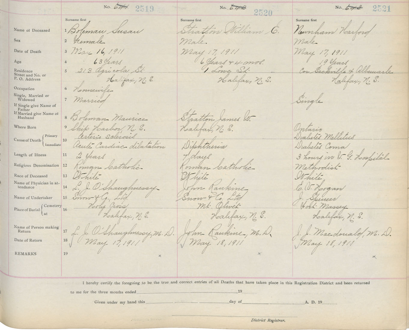 Death Registration: Year: 1911 book: 8 page: 420 number: 2521