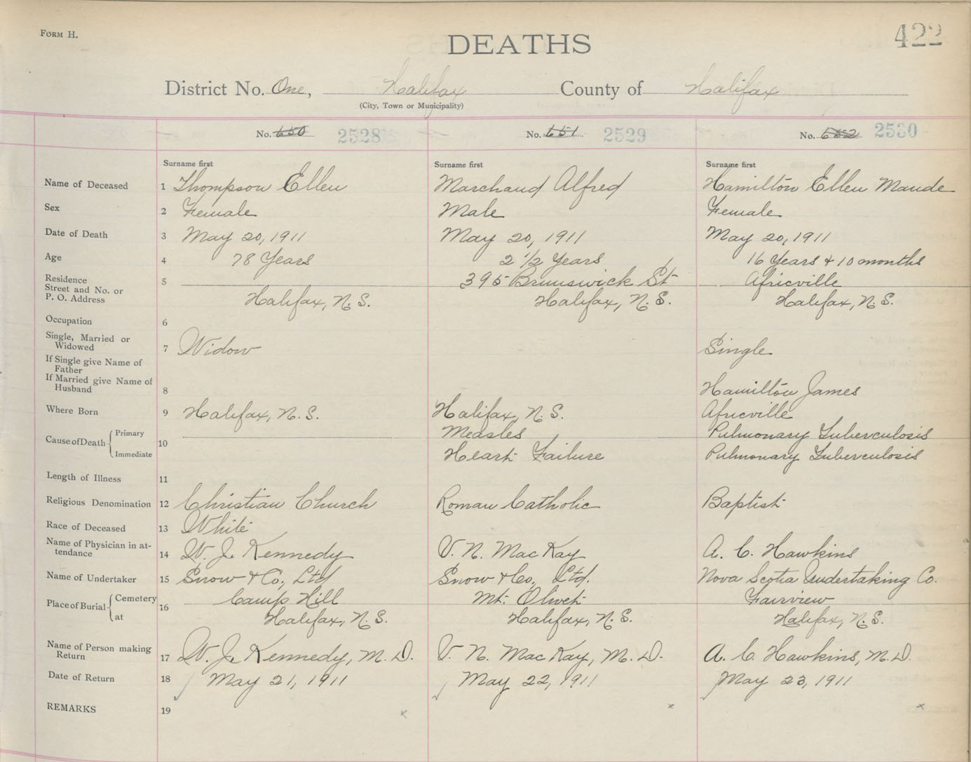 Death Registration: Year: 1911 book: 8 page: 422 number: 2530
