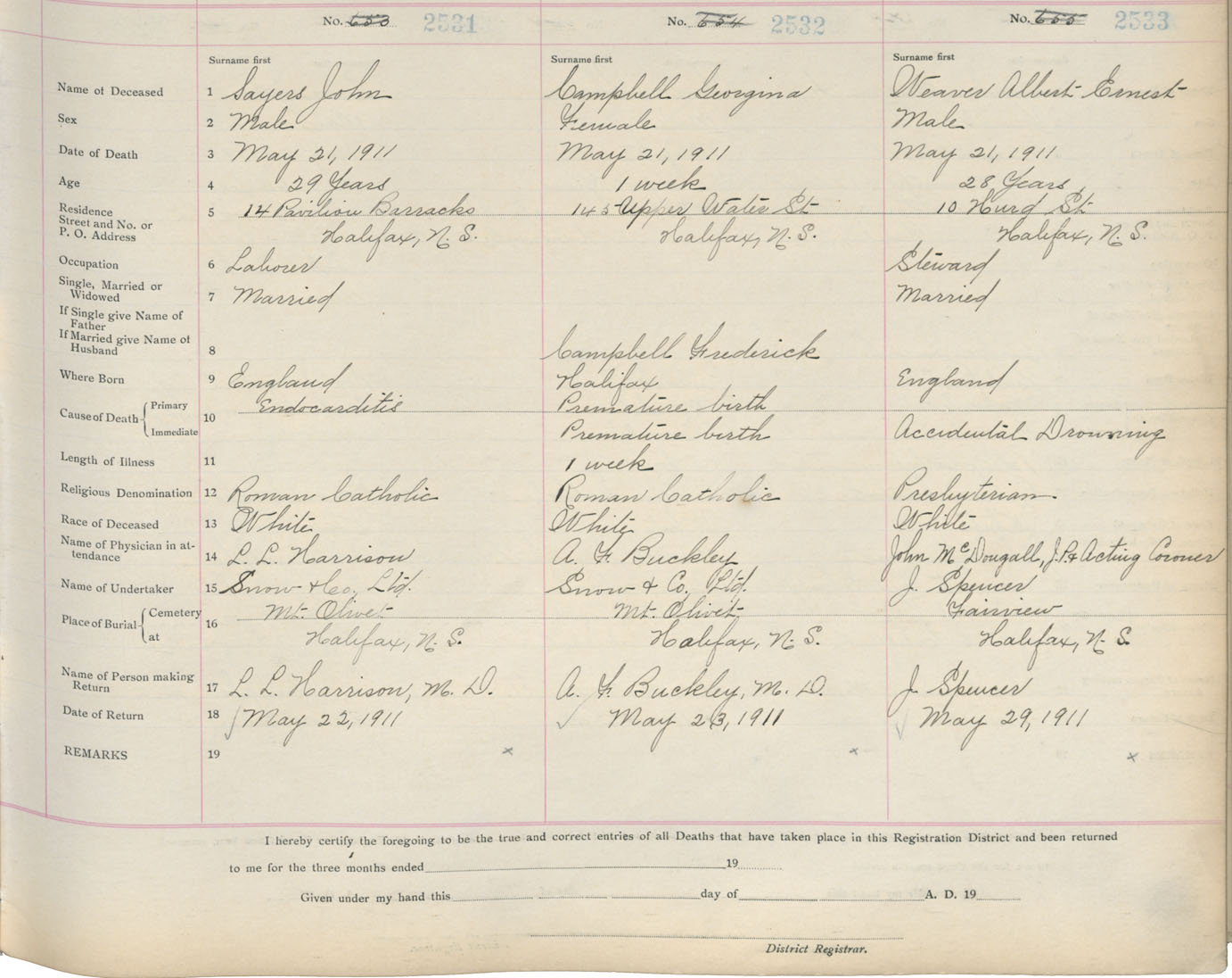 Death Registration: Year: 1911 book: 8 page: 422 number: 2533
