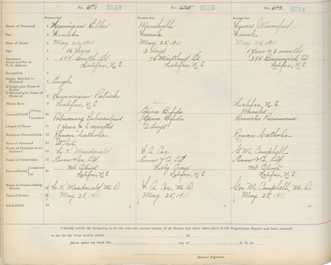 Death Registration: Year: 1911 book: 8 page: 425 number: 2551