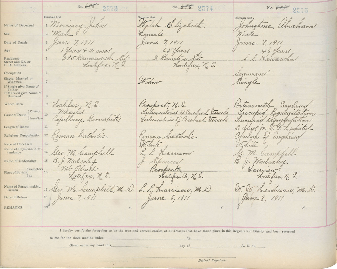 Death Registration: Year: 1911 book: 8 page: 429 number: 2575