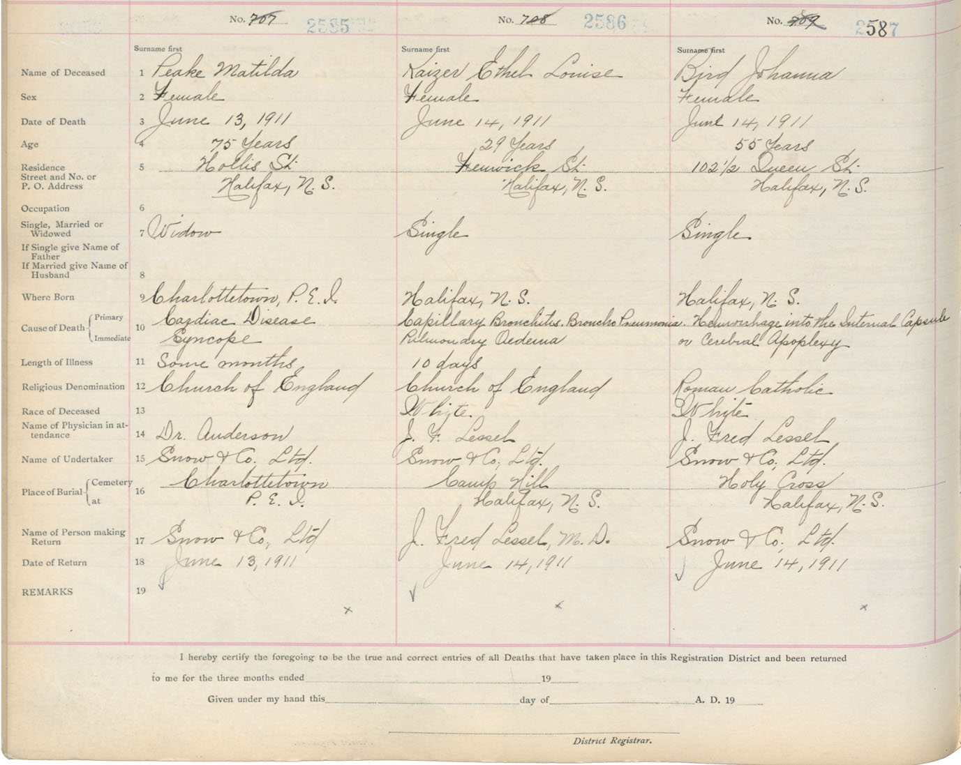Death Registration: Year: 1911 book: 8 page: 431 number: 2587