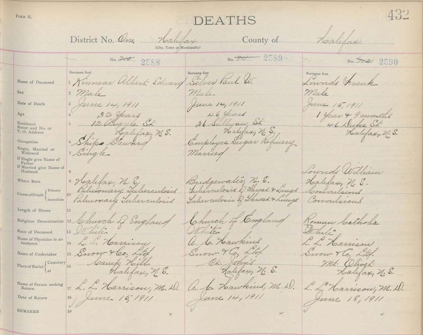 Death Registration: Year: 1911 book: 8 page: 432 number: 2590