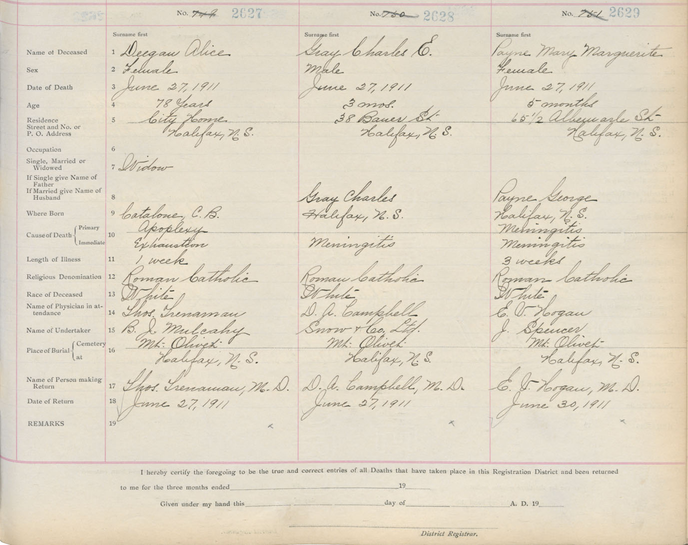 Death Registration: Year: 1911 book: 8 page: 438 number: 2627