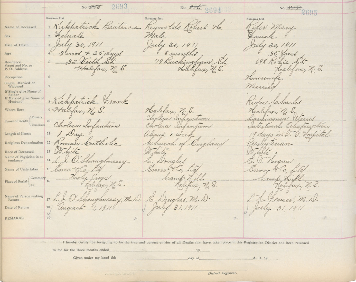 Death Registration: Year: 1911 book: 8 page: 449 number: 2693
