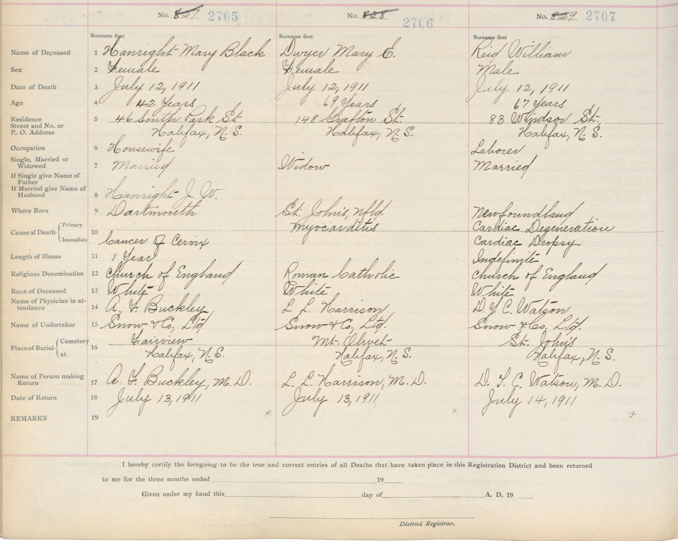 Death Registration: Year: 1911 book: 8 page: 451 number: 2705