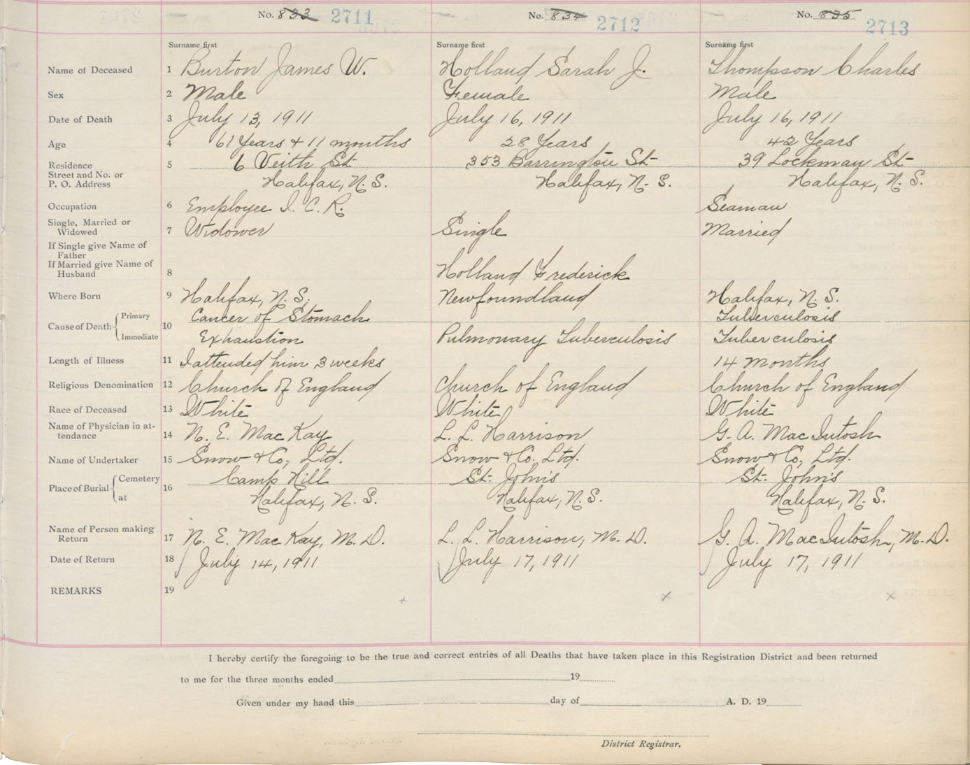 Death Registration: Year: 1911 book: 8 page: 452 number: 2711
