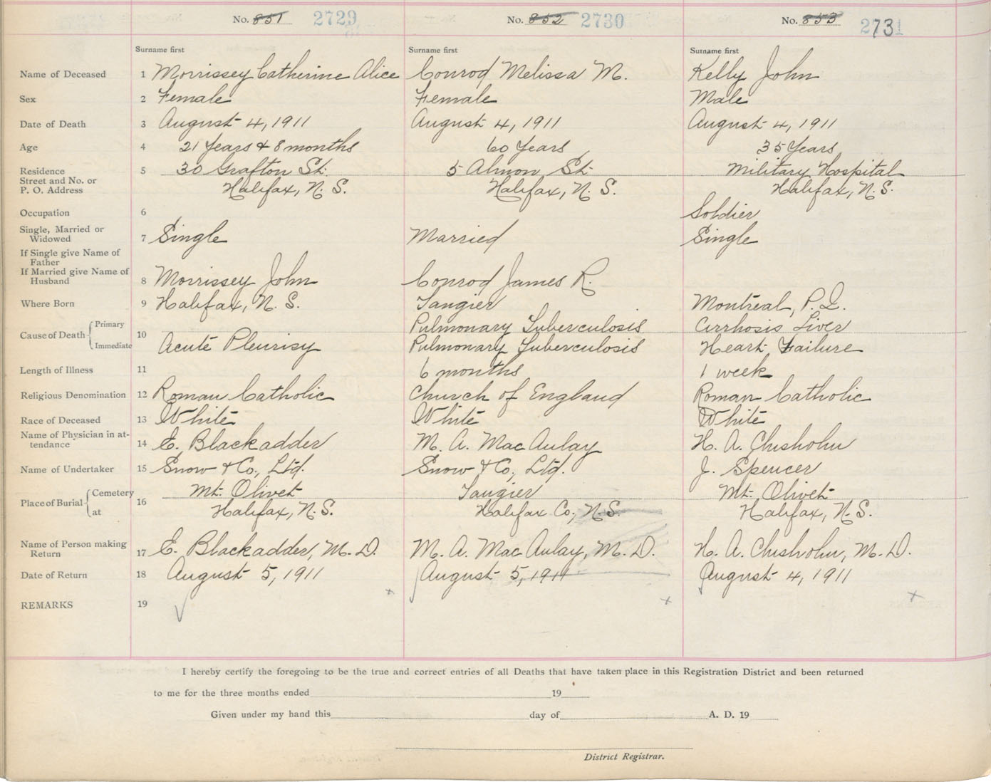 Death Registration: Year: 1911 book: 8 page: 455 number: 2729