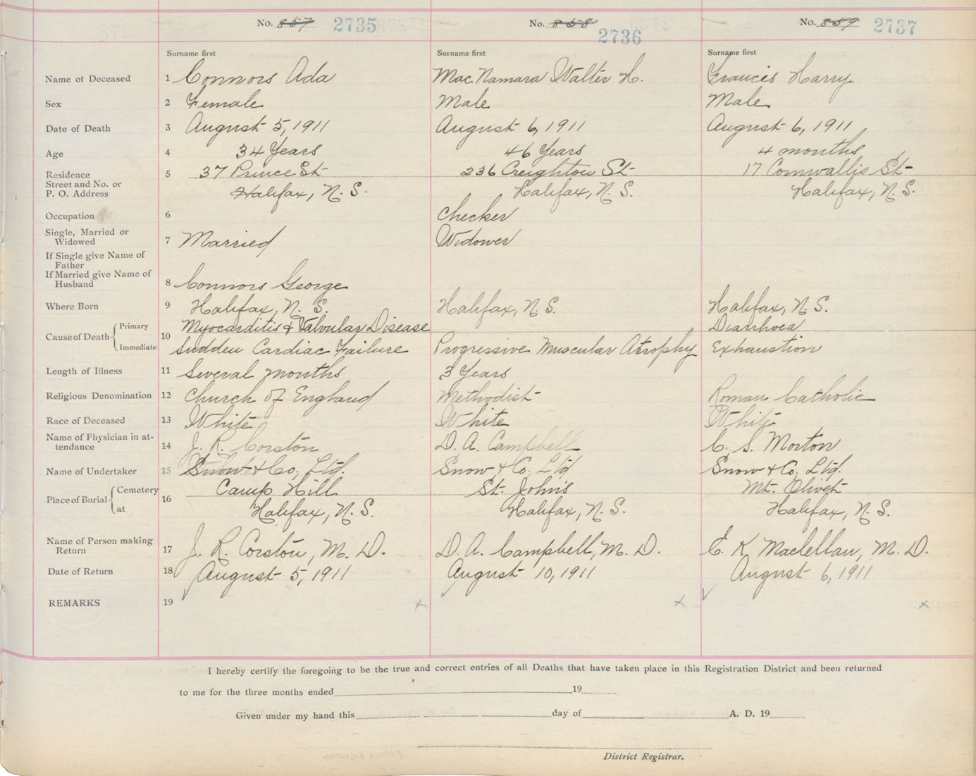 Death Registration: Year: 1911 book: 8 page: 456 number: 2735
