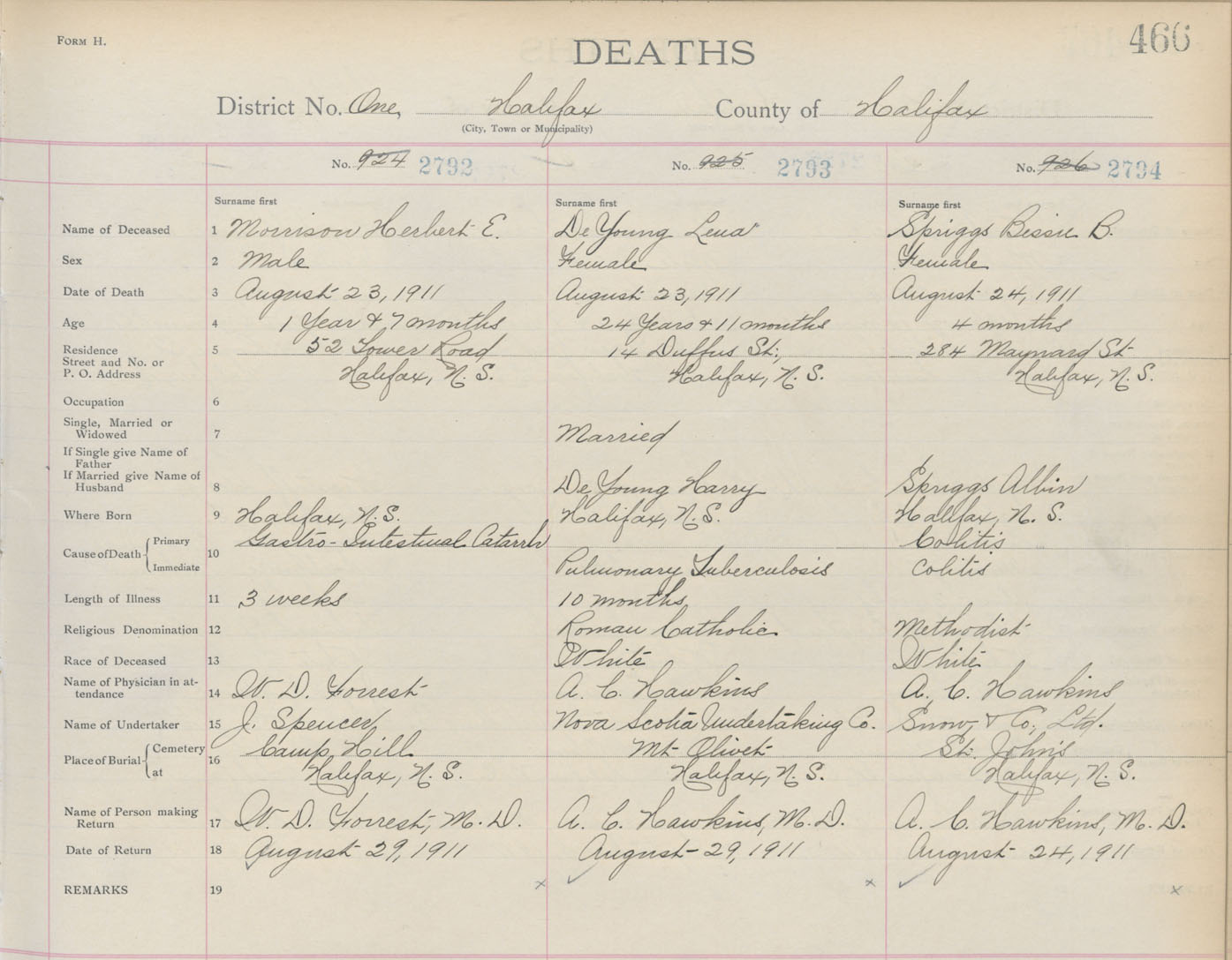 Death Registration: Year: 1911 book: 8 page: 466 number: 2792