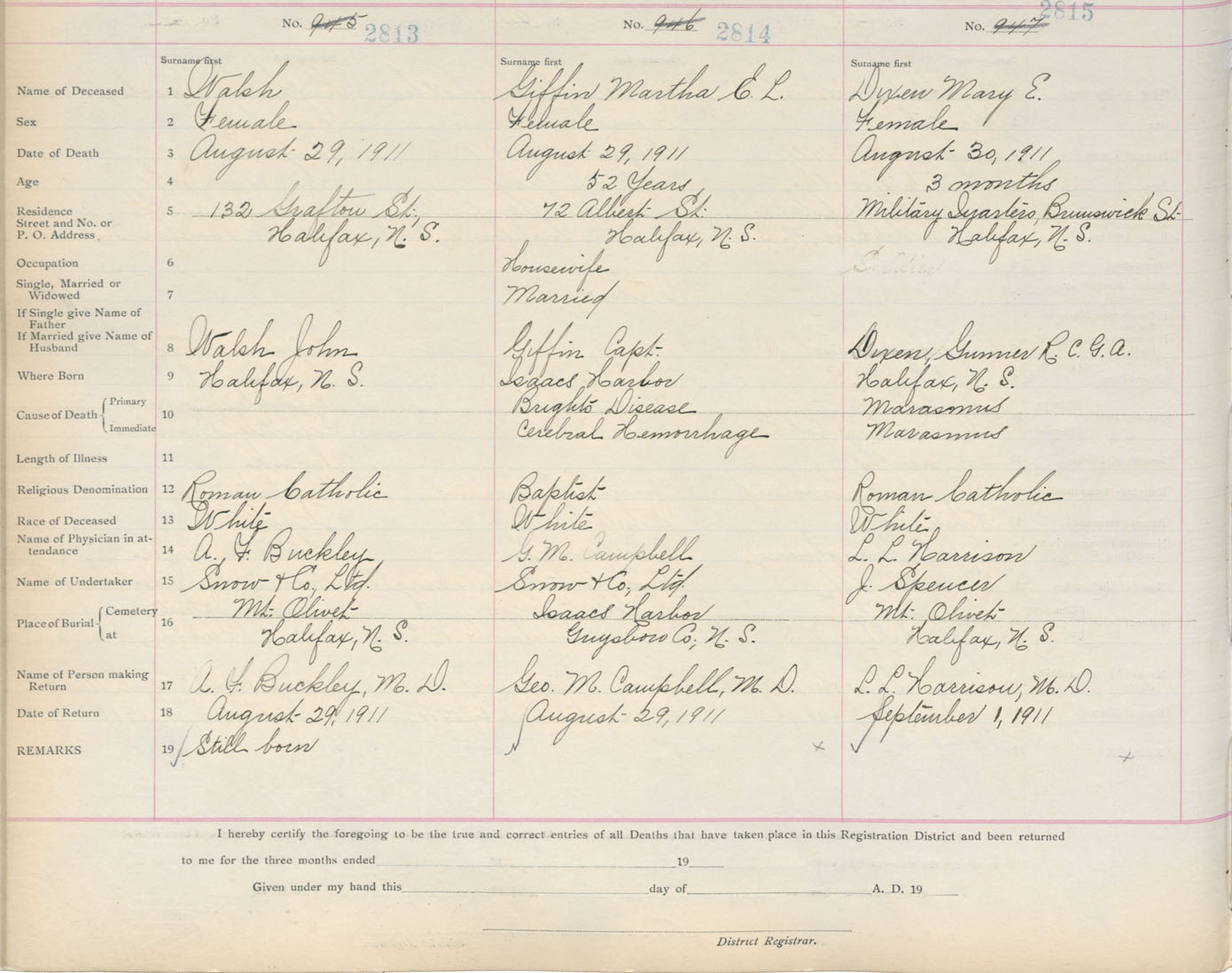 Death Registration: Year: 1911 book: 8 page: 469 number: 2813