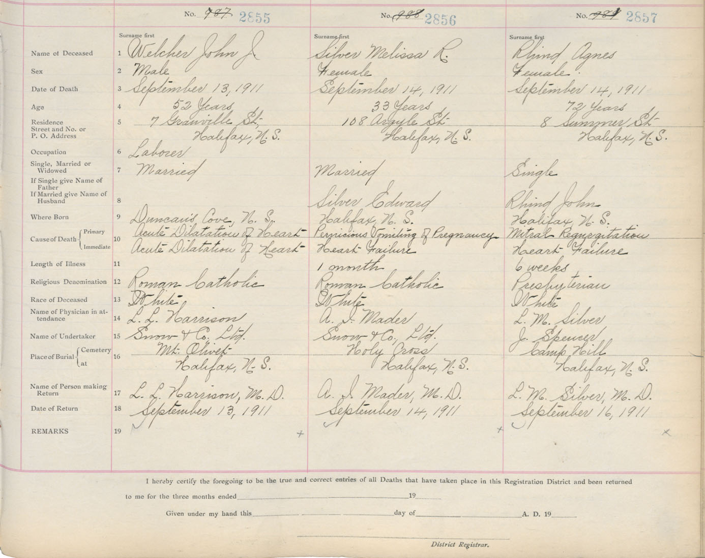 Death Registration: Year: 1911 book: 8 page: 476 number: 2855