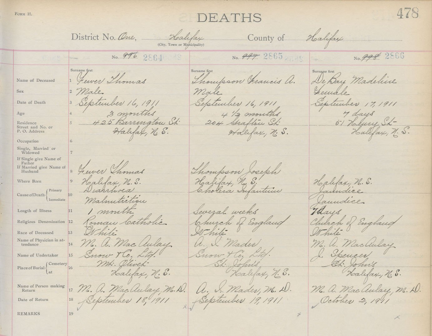 Death Registration: Year: 1911 book: 8 page: 478 number: 2864