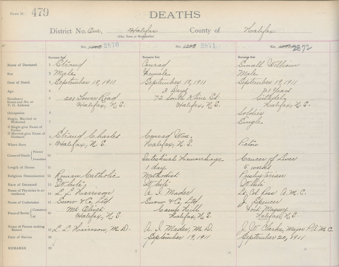 Death Registration: Year: 1911 book: 8 page: 479 number: 2870