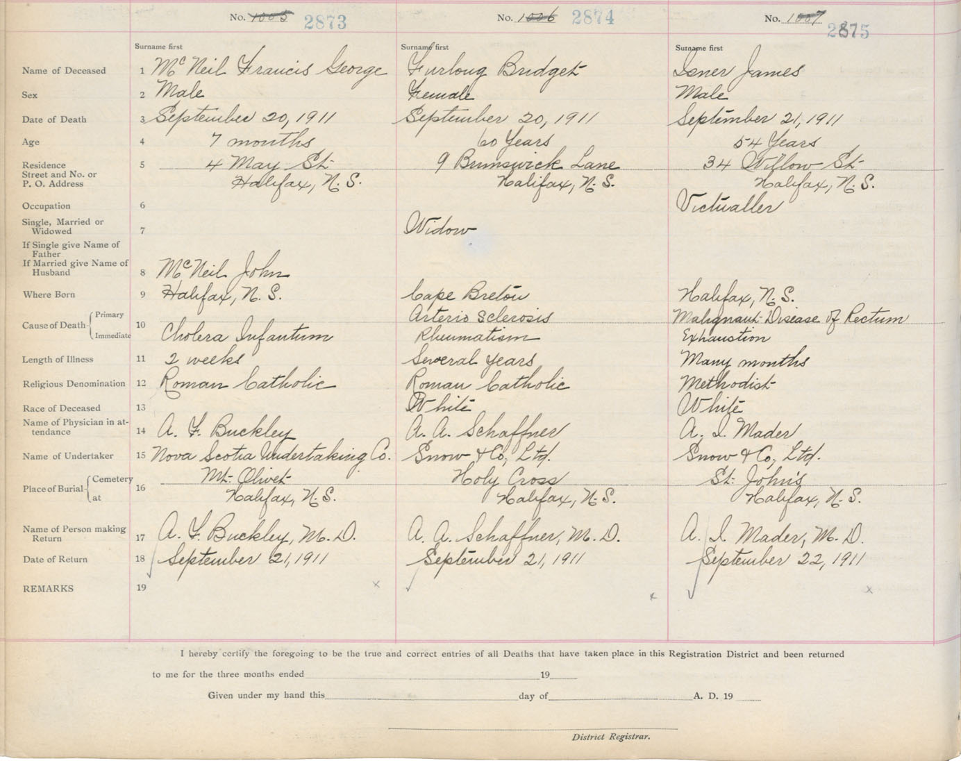 Death Registration: Year: 1911 book: 8 page: 479 number: 2873