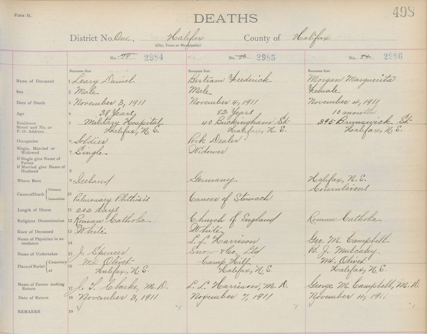 Death Registration: Year: 1911 book: 8 page: 498 number: 2984