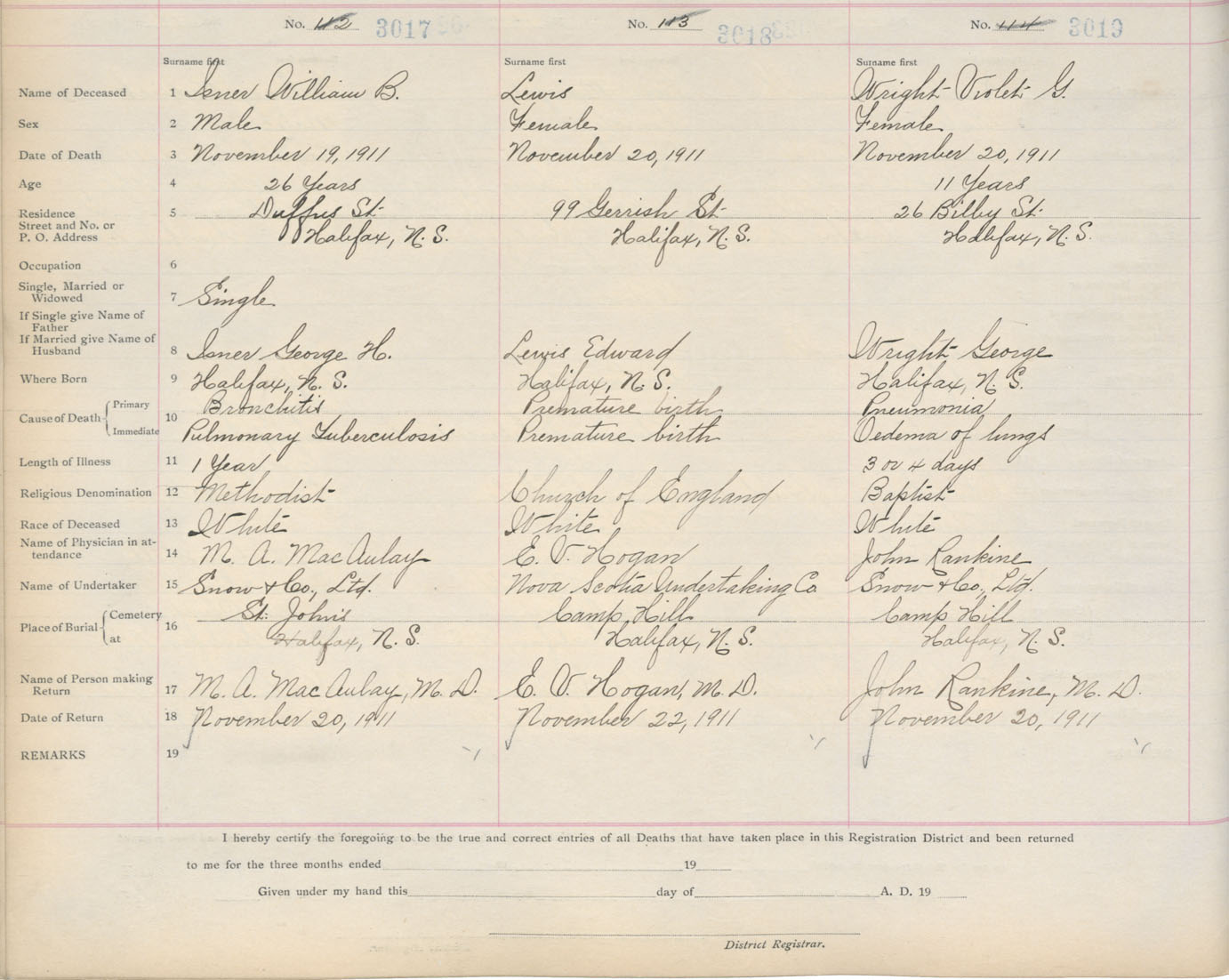 Death Registration: Year: 1911 book: 8 page: 503 number: 3017