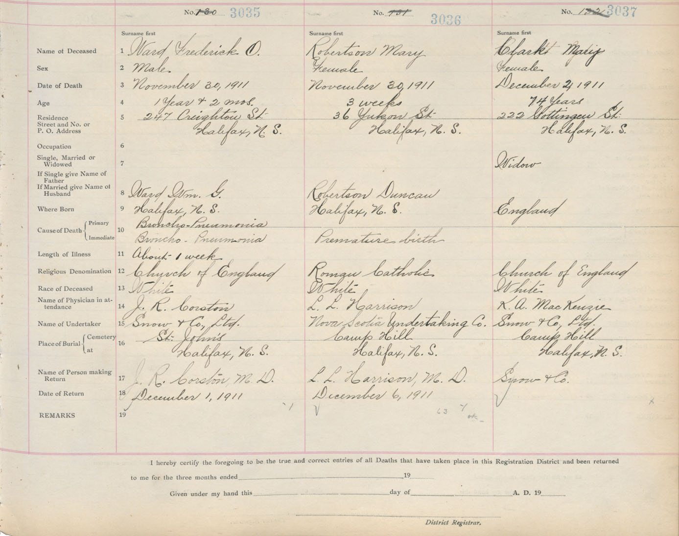 Death Registration: Year: 1911 book: 8 page: 506 number: 3035