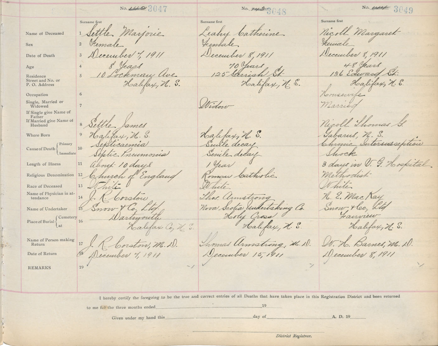 Death Registration: Year: 1911 book: 8 page: 508 number: 3047