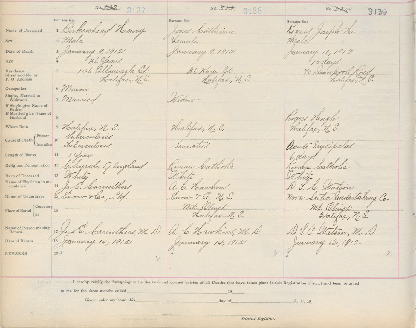 Death Registration: Year: 1912 book: 8 page: 523 number: 3137