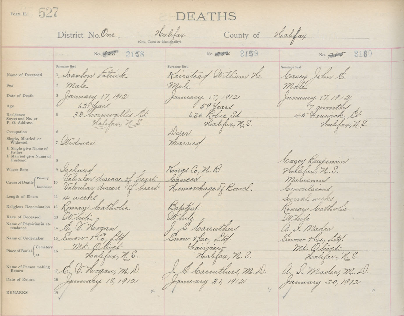 Death Registration: Year: 1912 book: 8 page: 527 number: 3158