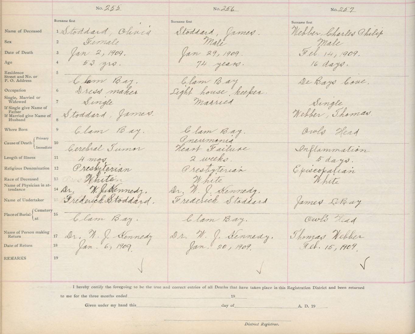 Death Registration: Year: 1909 book: 9 page: 43 number: 257