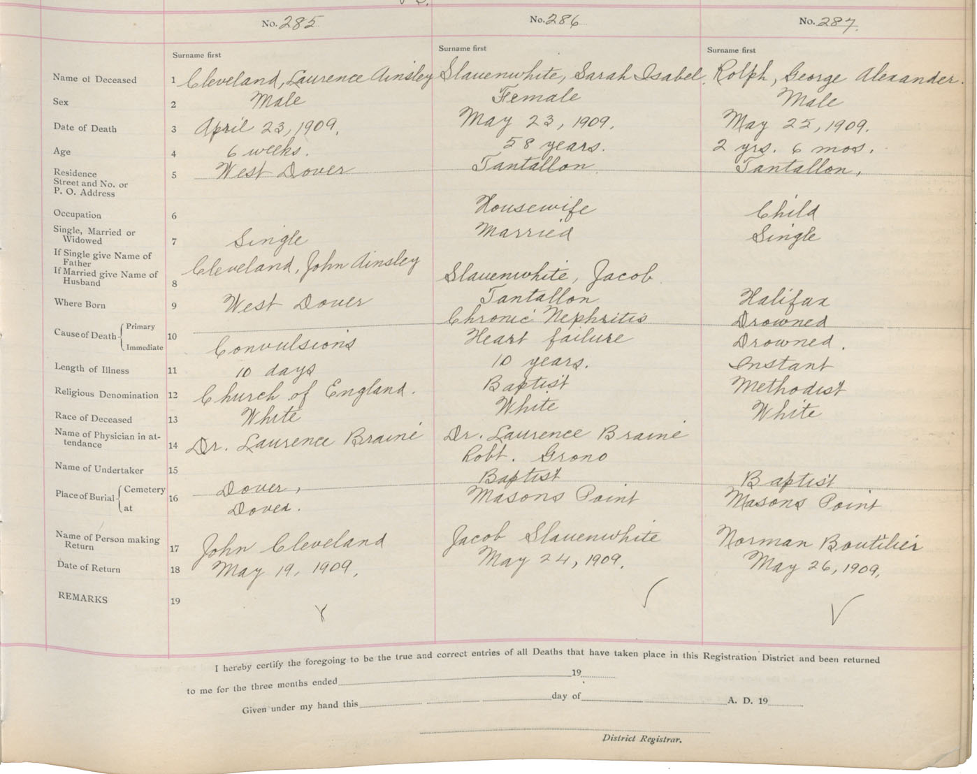 Death Registration: Year: 1909 book: 9 page: 48 number: 287