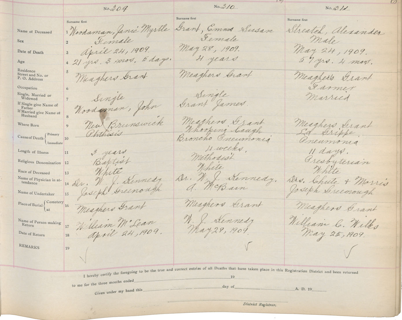 Death Registration: Year: 1909 book: 9 page: 52 number: 311