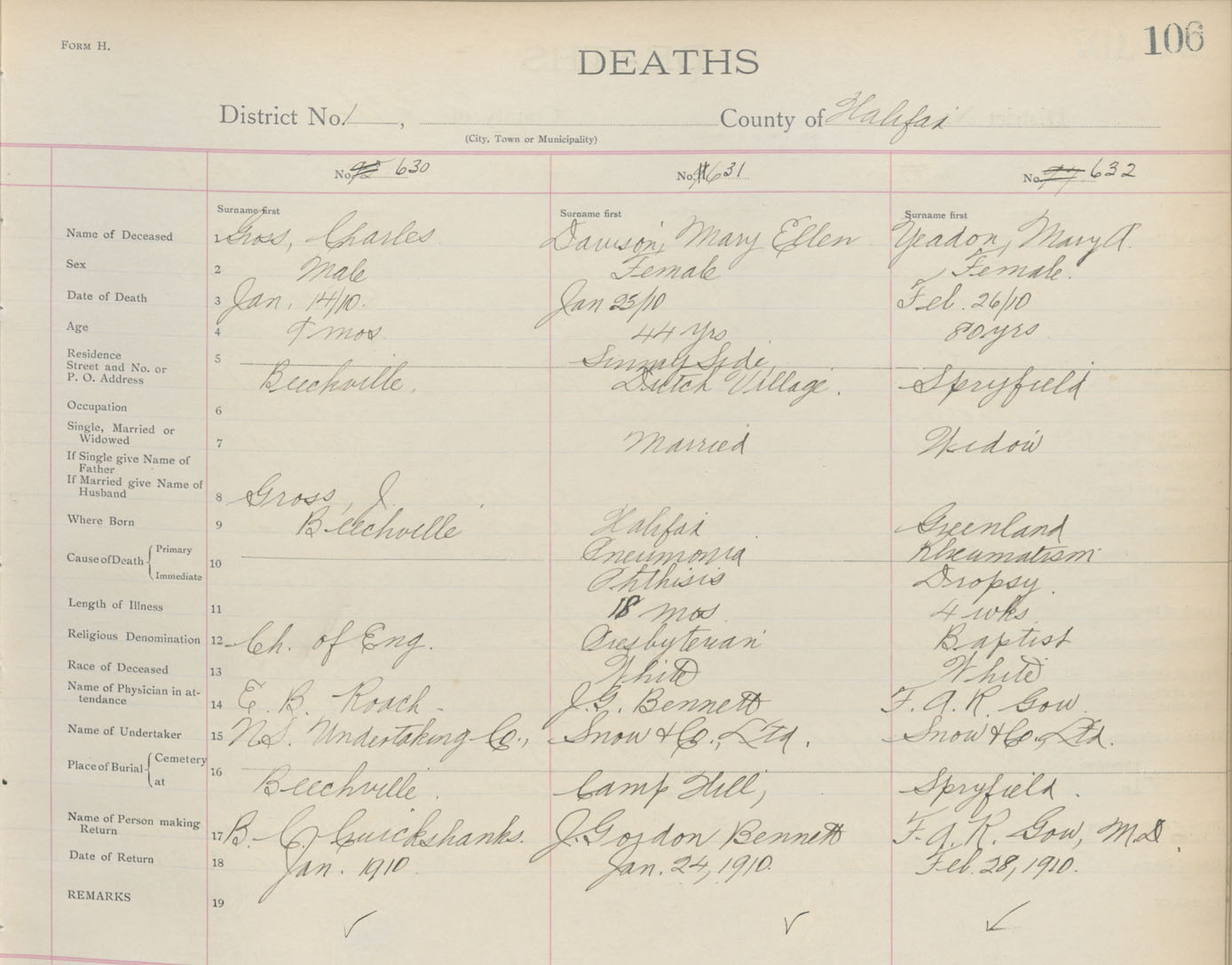 Death Registration: Year: 1910 book: 9 page: 106 number: 632